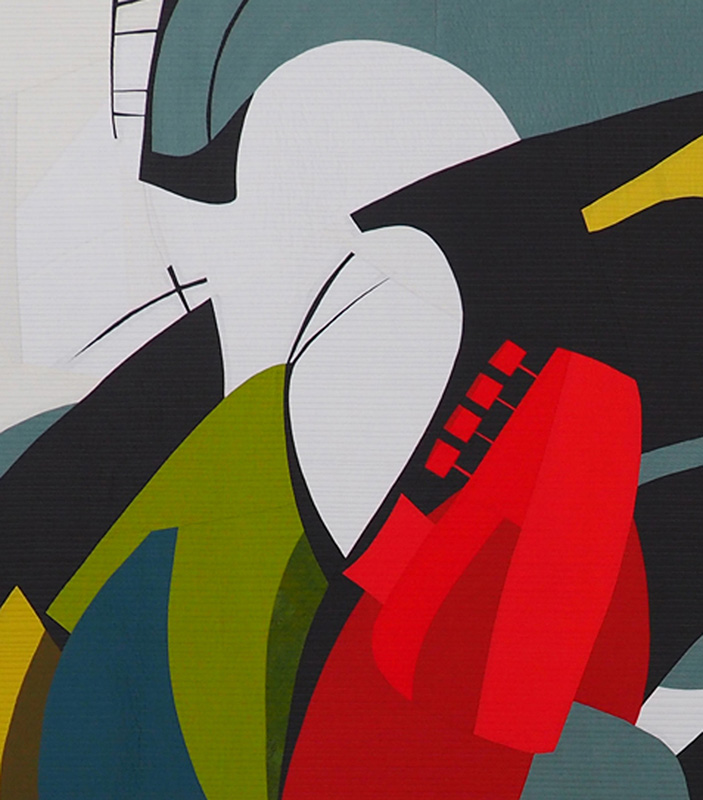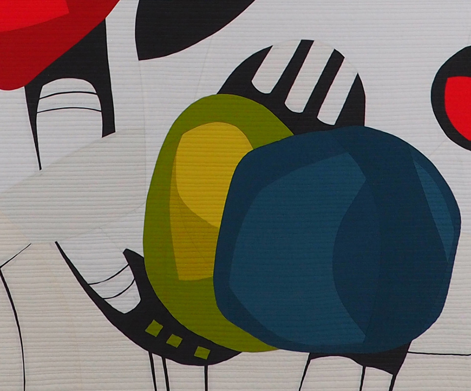 Composition 3 is the third in a series of improvisational quilts that explores abstract composition through line, colour, shape and form. Graphic linework and buoyant forms continue to intrigue me.