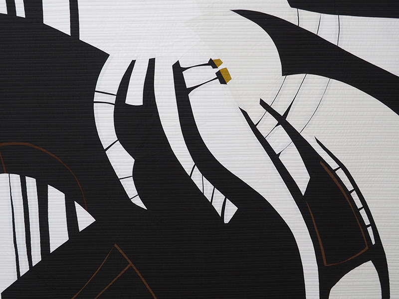 Composition 4 is the fourth in a series of improvisational quilts. Skinny lines, buoyant forms and ladders continue to intrigue me.