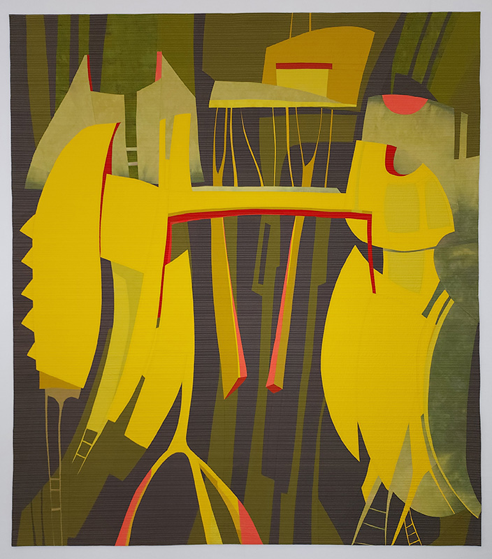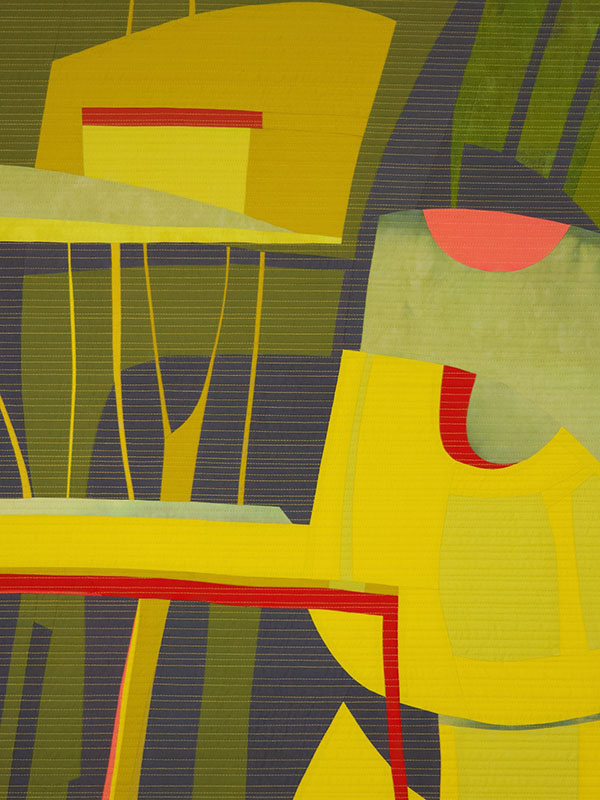 ‘Where the Bong-tree grows’ is an abstract quilt which explores line, shape, colour, and form. It is very loosely based on the Edward Lear poem, The Owl and the Pussy-Cat.